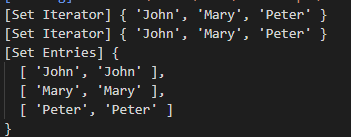 set.entries() // 셋 내의 모든 키-값 쌍들을 반환합니다.