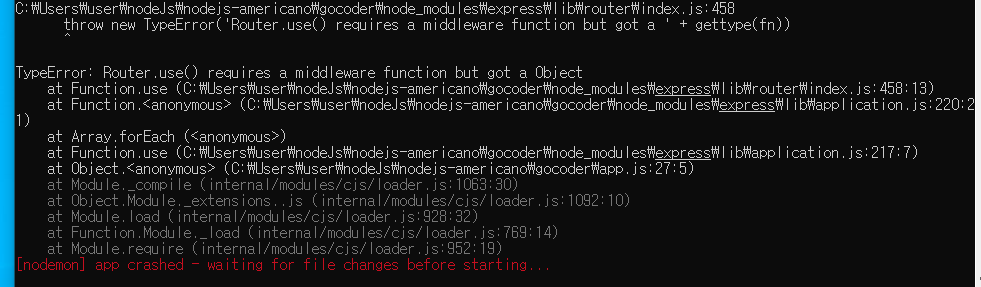routes 파일에서 아래의 문장이 빠진 경우 위와 같은 에러가 출력됩니다.